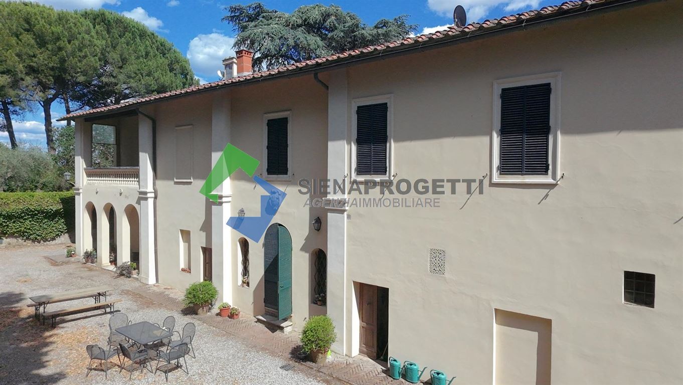 Alle porte della città di Siena proponiamo questa bellissima dimora storica signorile immersa all’interno di un parco privato e circondata da circa 7 ettari di terreno, in gran parte oliveta.