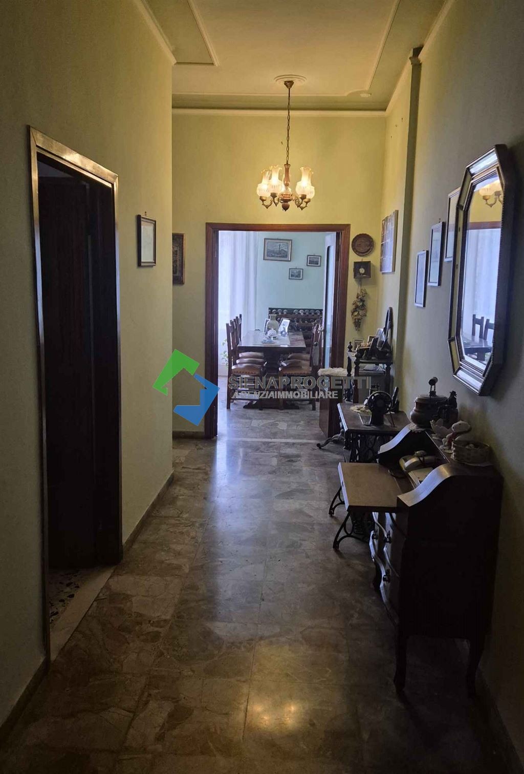 L’appartamento è costituito da un ingresso, una grande sala con accesso diretto al resede esterno, una cucina abitabile, tre camere da letto, un bagno finestrato, un bagno di servizio ed un comodo ripostiglio.