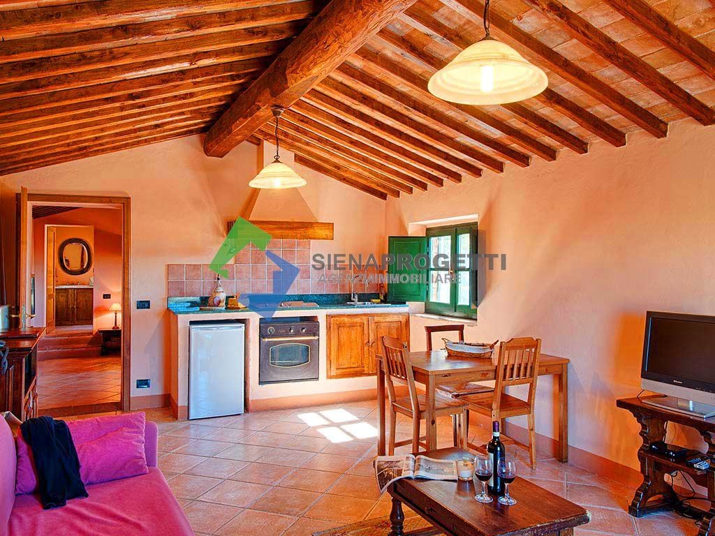 La struttura è stata completamente e finemente restaurata in tipico stile toscano, con travi in legno, mezzane e pietra.